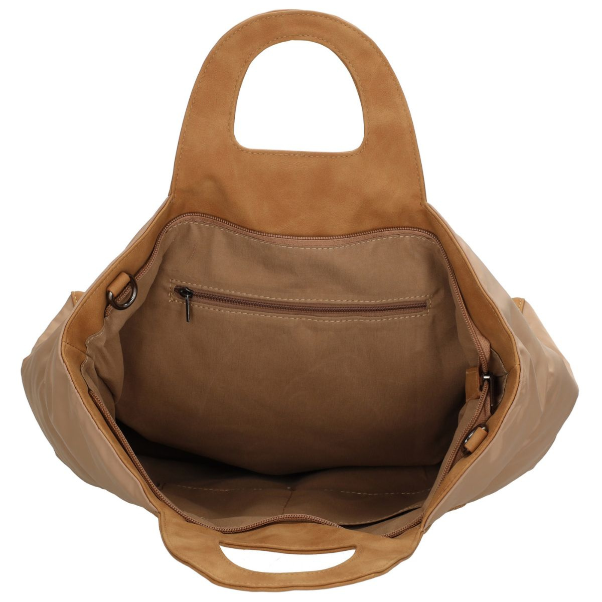 Dámska kabelka do ruky Zebra Trends vo farbe camel (ťavia hnedá) z kolekcie Selene. Vyrobená z ekokože a syntetickej tkaniny. Perfektný doplnok na každodenné nosenie. Či už idete do práce, na výlet alebo na nákupy, táto kabelka ponúka ideálnu kombináciu štýlu a funkčnosti. Môžete ju nosiť v ruke alebo cez telo (crossbody) vďaka nastaviteľnému a odnímateľnému ramennému popruhu. Kabelka má jeden hlavný úložný priestor so zapínaním na zips, v ktorom sú tri vnútorné vrecká - dve otvorené vrecká a jedno vrecko na zips. Do kabelky sa zmestí formát A4. Na zadnej strane kabelky sa nachádza jedno vrecko na zips. Kabelka je navrhnutá tak, aby všetky Vaše veci boli usporiadané a ľahko dostupné.