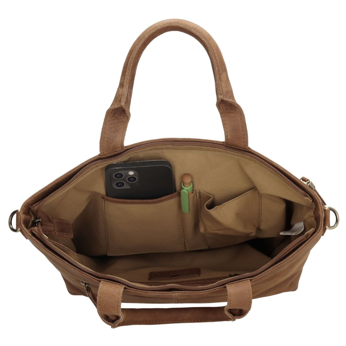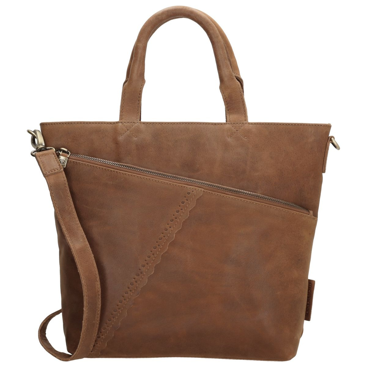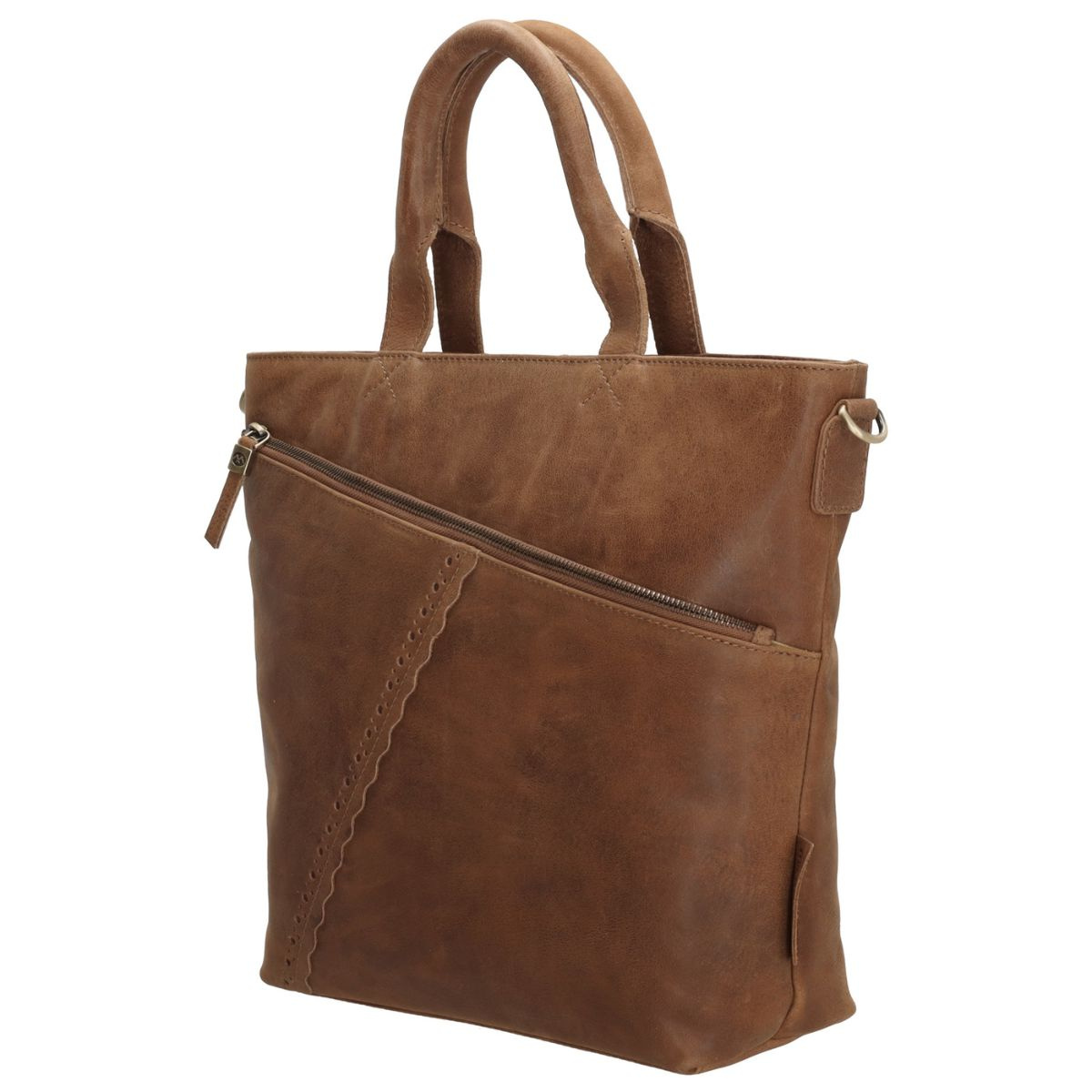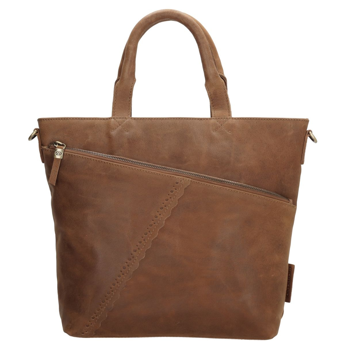 Elegantná dámska kožená kabelka do ruky Micmacbags v hnedej farbe z jedinečnej kolekcie Marakéš. Vyrobená z pravej prírodnej kože vysokej kvality. Kabelka má jeden hlavný úložný priestor so zapínaním na zips, vhodný pre formát A4 a v ktorom nájdete karabínku na kľúče, priestor na jedno pero a tri vnútorné vrecká - dve otvorené vrecká a jedno vrecko na zips. Na prednej a zadnej strane kabelky je vrecko na zips. Kabelka má dve rúčky pre nosenie v ruke a taktiež odopínateľný, nastaviteľný ramenný popruh pre nosenie cez telo (crossbody). Kabelky z kolekcie Marakéš Vám pripomenú krásne mesto Marakéš - vzory, ktoré sa v meste nachádzajú, sú v tejto kolekcii jemne zastúpené.