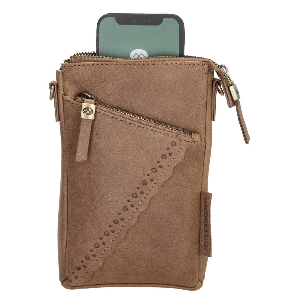 Dámska kožená crossbody kabelka na mobil Micmacbags vo farbe taupe (sivohnedá) z jedinečnej kolekcie Marakéš. Kabelky z kolekcie Marakéš Vám pripomenú krásne mesto Marakéš - množstvo vzorov, ktoré sa v meste nachádzajú, je v kabelkách z tejto kolekcie zastúpené. Kabelka má jeden hlavný úložný priestor so zapínaním na zips, v ktorom nájdete jedno jedno vnútorné otvorené vrecko. Na prednej strane kabelky je jedno vrecko so zapínaním na zips. Kabelka má odopínateľný, nastaviteľný kožený popruh pre nosenie cez telo - crossbody. Pre každú ženu, ktorá zbožňuje jedinečné a originálne doplnky, je táto kabelka nevyhnutnosťou.