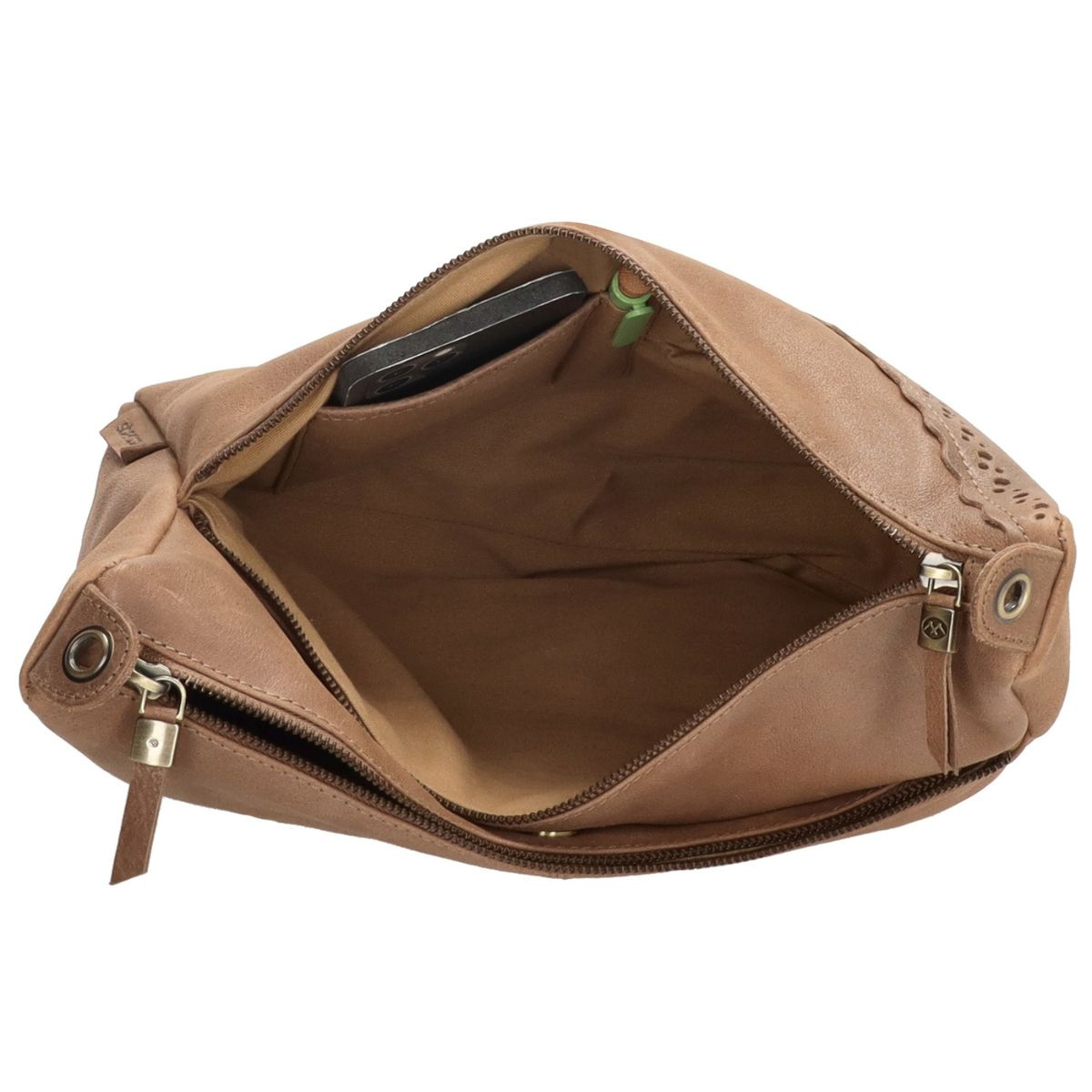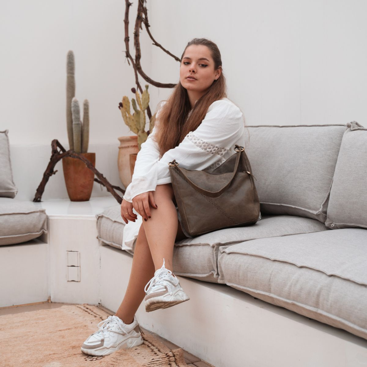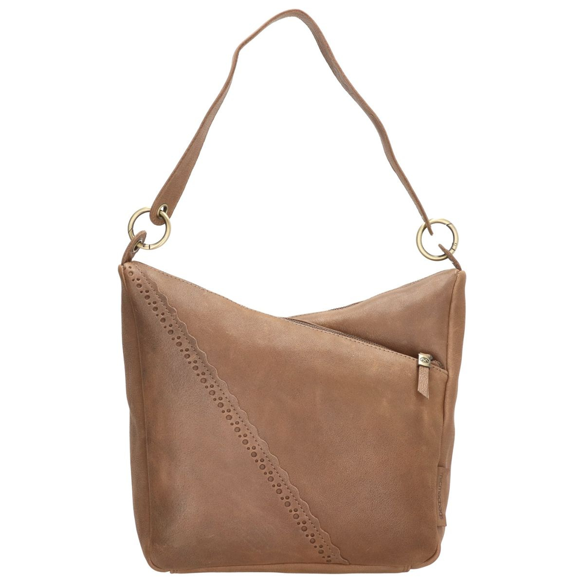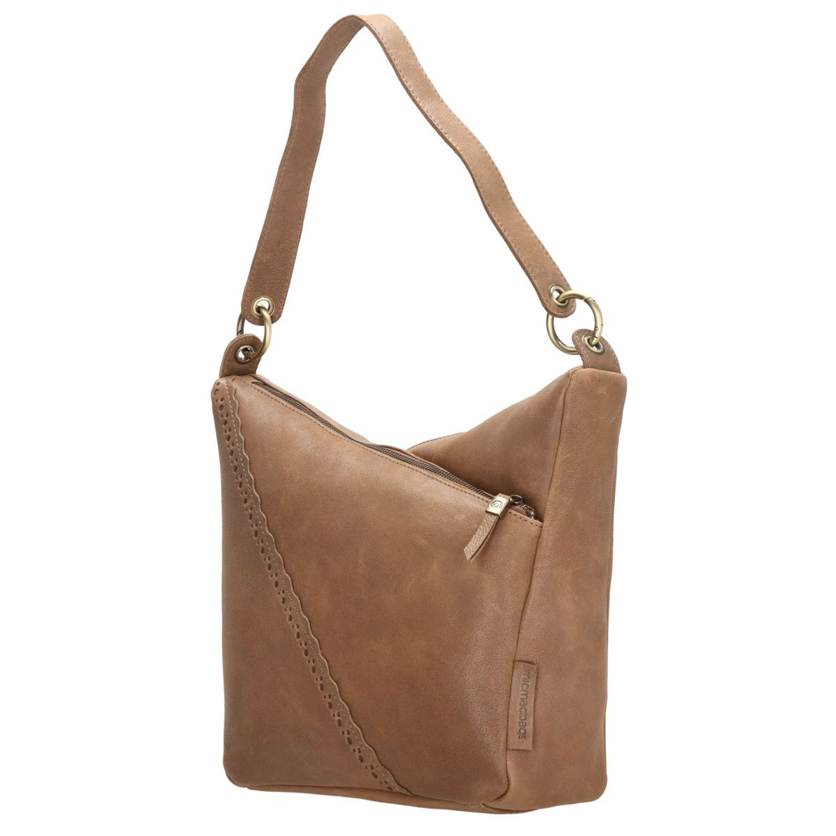 Dámska kožená kabelka Micmacbags z krásnej kolekcie Marakéš vo farbe taupe (sivohnedá). Kabelky z kolekcie Marakéš Vám pripomenú nádherné mesto Marakéš - vzory, ktoré sa v meste nachádzajú, sú v tejto kolekcii jemne zastúpené. Kabelka je vyrobená z pravej prídodnej kože a má tri hlavné úložné komory (priečinky) - dve sú so zapínaním na zips a jedna sa zapína na magnetickú patentku. Do kabelky sa nezmestí formát A4, ale aj napriek tomu je dosť priestranná a ideálna na každodenné nosenie. Na zadnej strane kabelky sa nachádza vrecko na zips. Kabelka má dva odopínateľné popruhy, jeden je určený pre nosenie na ramene (cez plece) a ďalší je pre nosenie cez telo (crossbody) - ten je aj nastaviteľný. Kruhy, na ktoré sa dávajú popruhy, sa dajú rozopnúť.