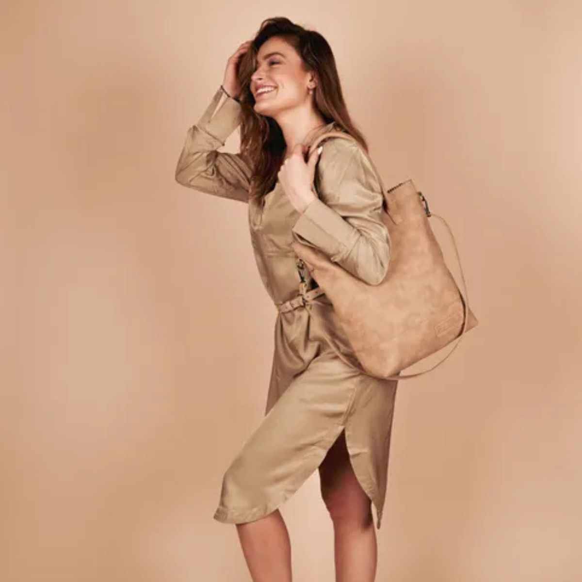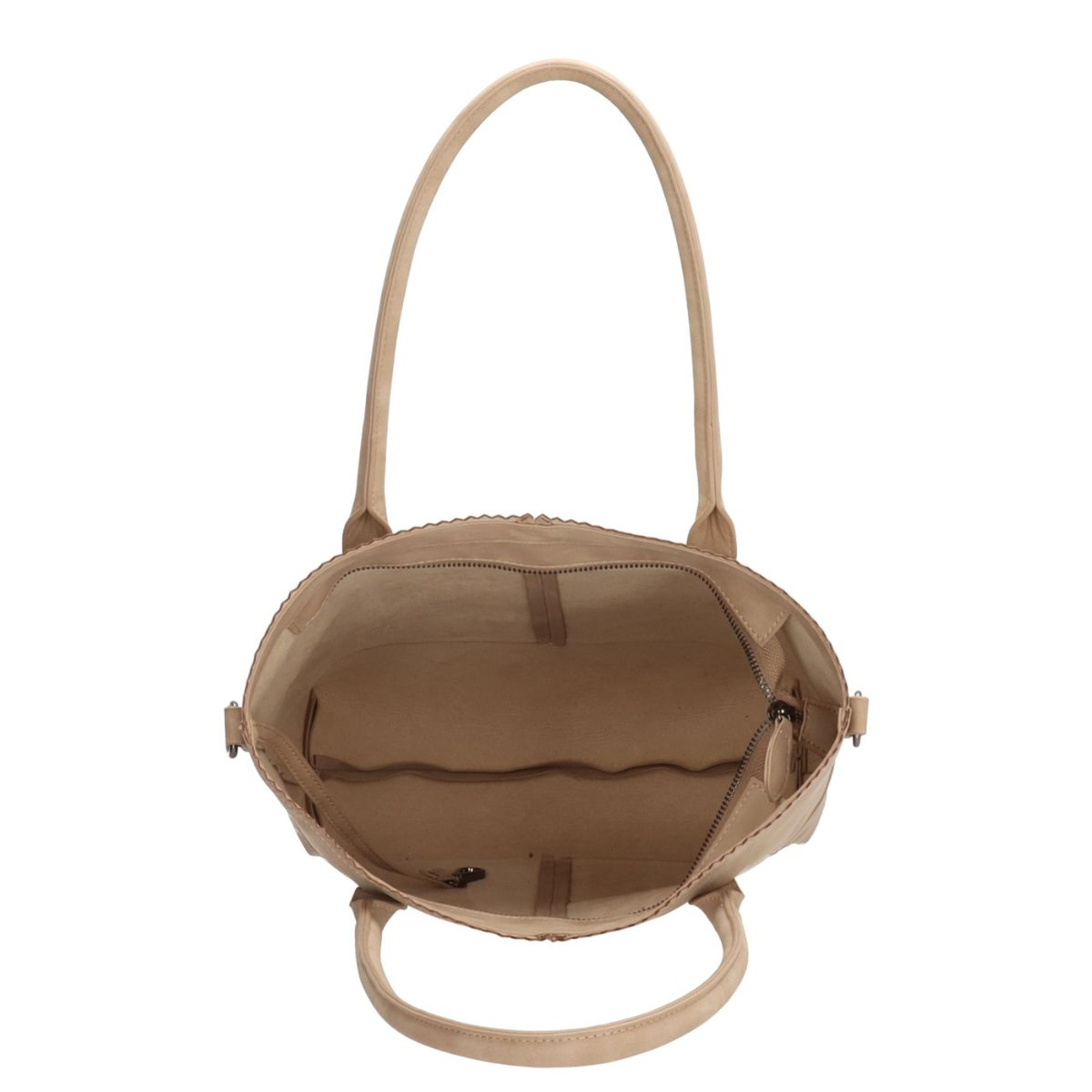 Dámska kabelka shopper na rameno Zebra Trends v jemnej, svetlej pieskovej farbe z kolekcie Kartel. Vyrobená z kvalitnej ekokože so semišovým efektom, veľmi príjemná na dotyk. Je ideálna na každodenné nosenie do práce alebo na štúdium, zmestí sa do nej formát A4. Kabelka má jeden hlavný úložný priestor so zapínaním na zips. Súčasťou kabelky je odopínateľné puzdro na zips. Kabelka má dve rúčky pre pohodlné nosenie na ramene (cez plece) a taktiež odopínateľný, nastaviteľný ramenný popruh pre nosenie cez telo (crossbody). Ak hľadáte elegantnú a praktickú kabelku na každý deň, táto bude pre Vás ako stvorená.