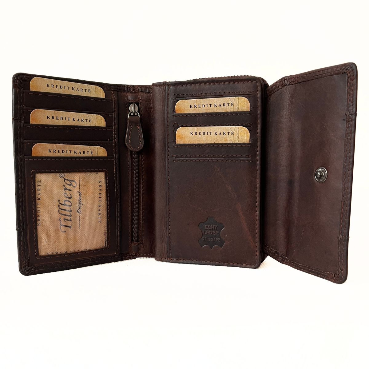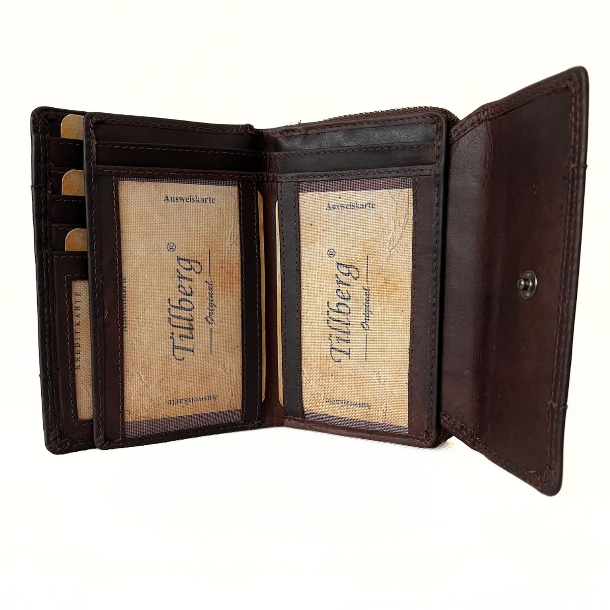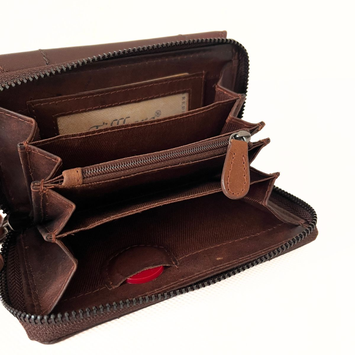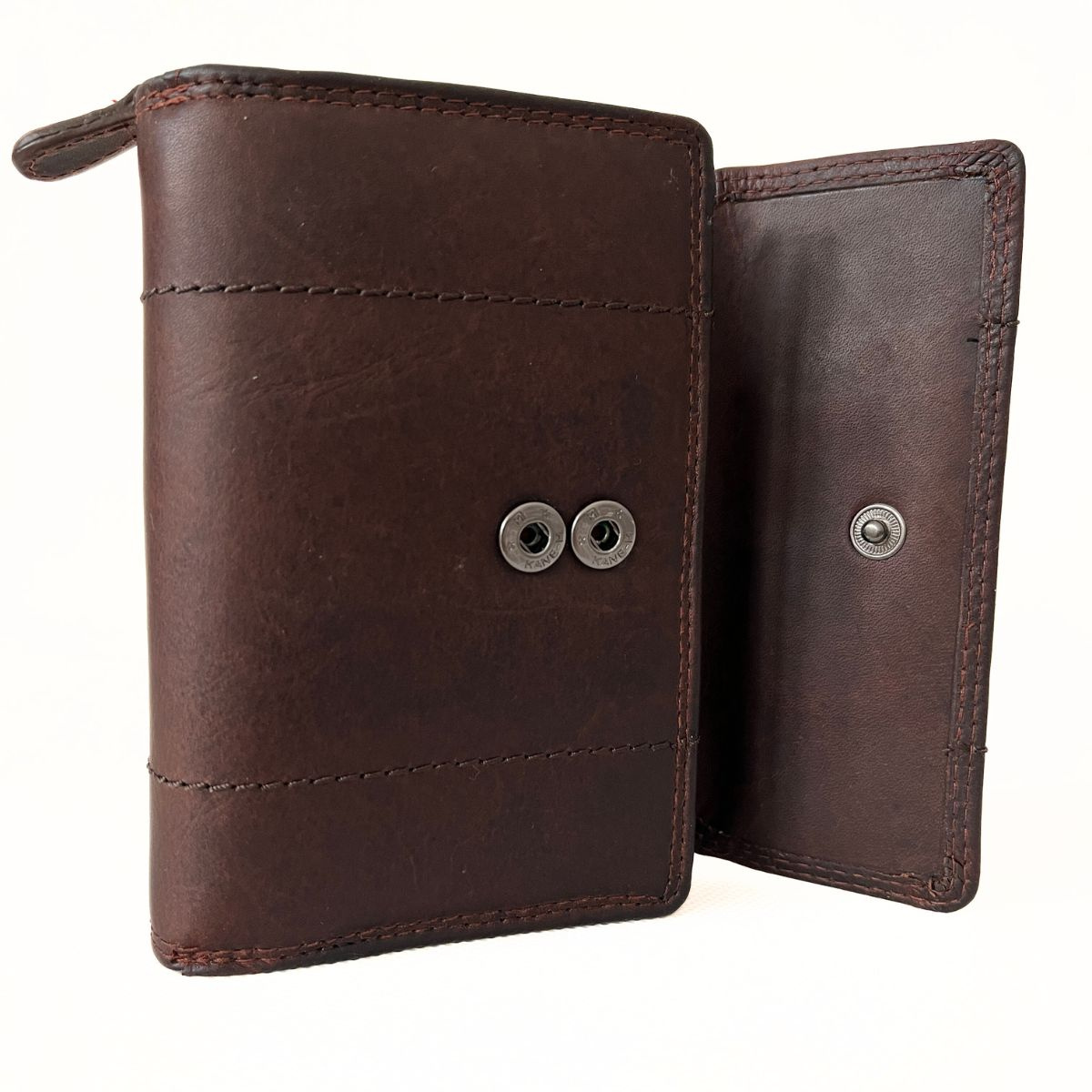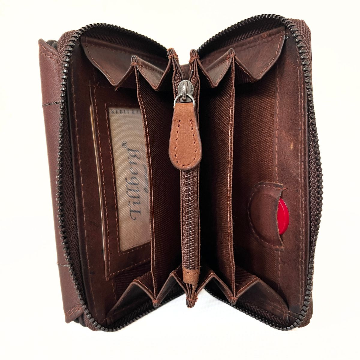 Dámska kožená peňaženka v koňakovej farbe. Peňaženka je v strednej veľkosti a je vyrobená z vysoko kvalitnej pravej byvolej kože. Peňaženka má dve samostatné časti. Prvá časť má zapínanie na dvojitý patent (kovový cvok) a obsahuje priehradky na karty, bankovky a fotografiu (sieťovaná priehradka). Druhá časť je mincovník so zapínaním na zips. Peňaženka má zabezpečenie RFID, ktoré chráni údaje na Vašich bezkontaktných kartách. Súčasťou peňaženky nie je krabička. Kovanie je strieborné. Táto peňaženka je krásnym a originálnym dámskym doplnkom v prémiovej kvalite s dostatkom priestoru na všetky potrebné veci.
