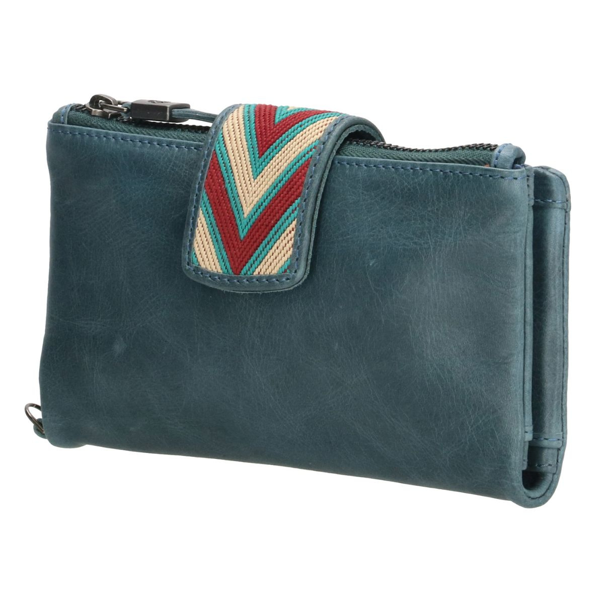 Dámska kožená peňaženka v džínsovomodrej farbe z kolekcie Friendship od značky Micmacbags ponúka dostatok priestoru na všetky Vaše karty, bankovky a mince. Vyrobená z vysoko kvalitnej pravej prírodnej kože. Farebné vzorované zapínanie je skutočným pútačom pozornosti. Peňaženka má zapínanie na všitý magnet. Hlavný úložný priestor obsahuje priečinky na karty, bankovky a fotografiu (sieťovaný priečinok). Peňaženka má vrecko na zips, ktoré môžete využívať ako mincovník. Súčasťou peňaženky je kožený, odopínateľný remienok na zápästie. Na zadnej strane peňaženky je vrecko na zips. Tento jedinečný doplnok je ideálny aj ako darček.