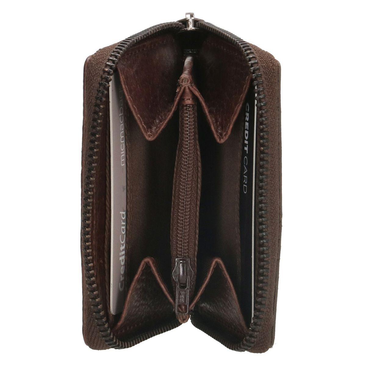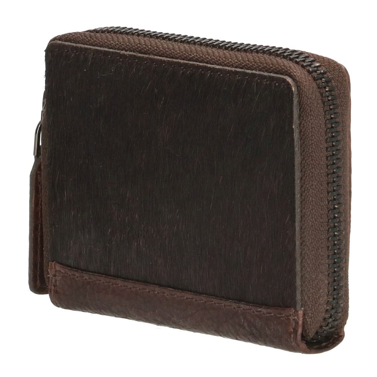 Malá dámska kožená peňaženka Micmacbags v tmavohnedej farbe z kolekcie Mendoza. Vyrobená z kvalitnej pravej prírodnej kože. Peňaženku robí jedinečnou jej predná strana, ktorá je pokrytá kúskom kožušiny. Hlavný úložný priestor má zapínanie na zips a nájdete v ňom priečinky na karty a vrecko na zips. Na zadnej strane peňaženky sú ďalšie priečinky na karty. Peňaženka má zabezpečenie RFID, ktoré chráni údaje na Vašich bezkontaktných kartách. Kolekcia Mendoza od tejto značky spája westernovú atmosféru s elegantným moderným štýlom. Táto peňaženka je skvelou voľbou pre milovníčky kompaktných doplnkov - zmestí sa do ľadvinky aj do malej kabelky.